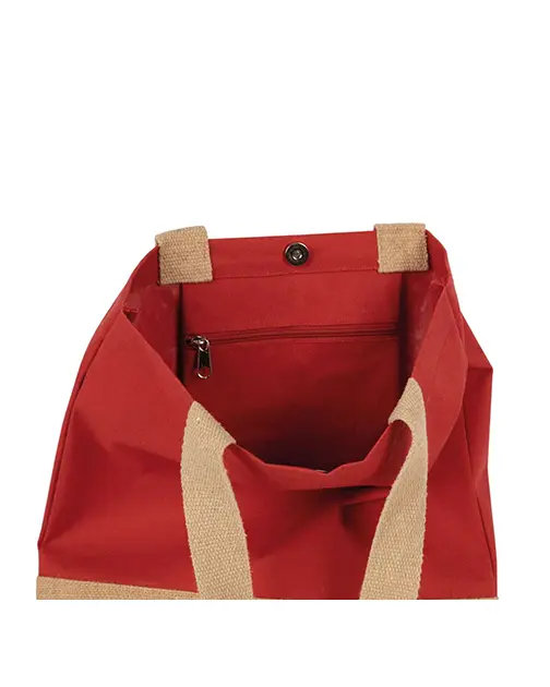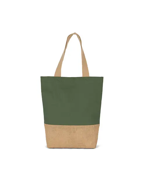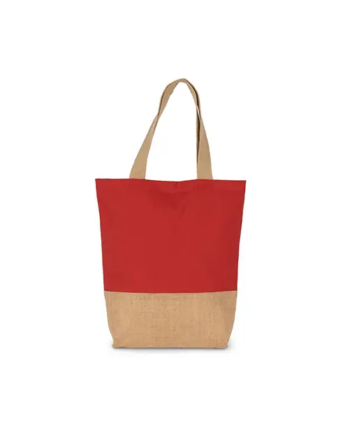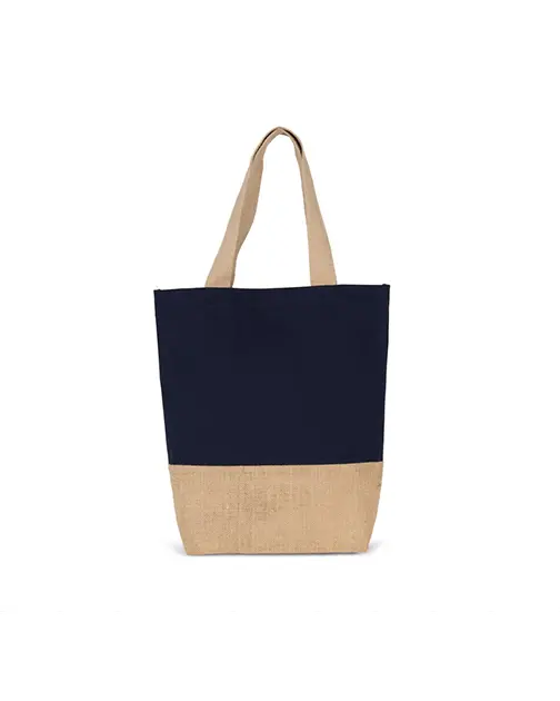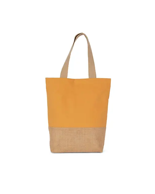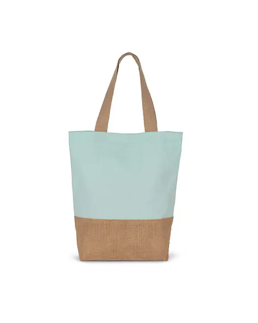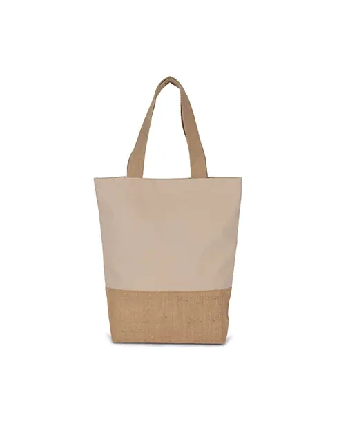 Geantă de cumpărături clasică cu un panou inferior din iută laminată și un panou principal din bumbac pentru decorare ușoară
