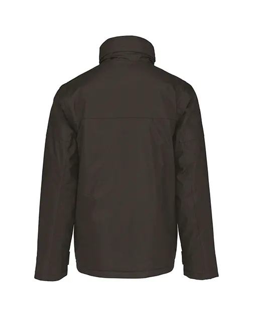 Glugă ascunsă, cu șnur elastic și acces cu fermoar.
