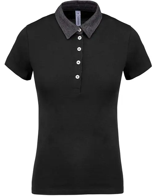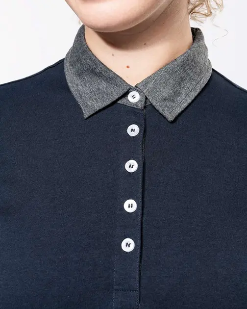 Guler și interiorul fentei contrastante cu 5 nasturi albi din sidef artificial.