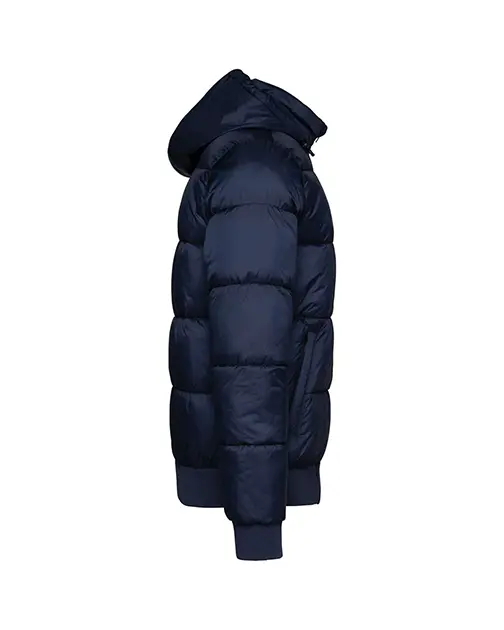Guler înalt cu glugă căptușită, reglabilă și compartimentată în 3 părți, cu opritor