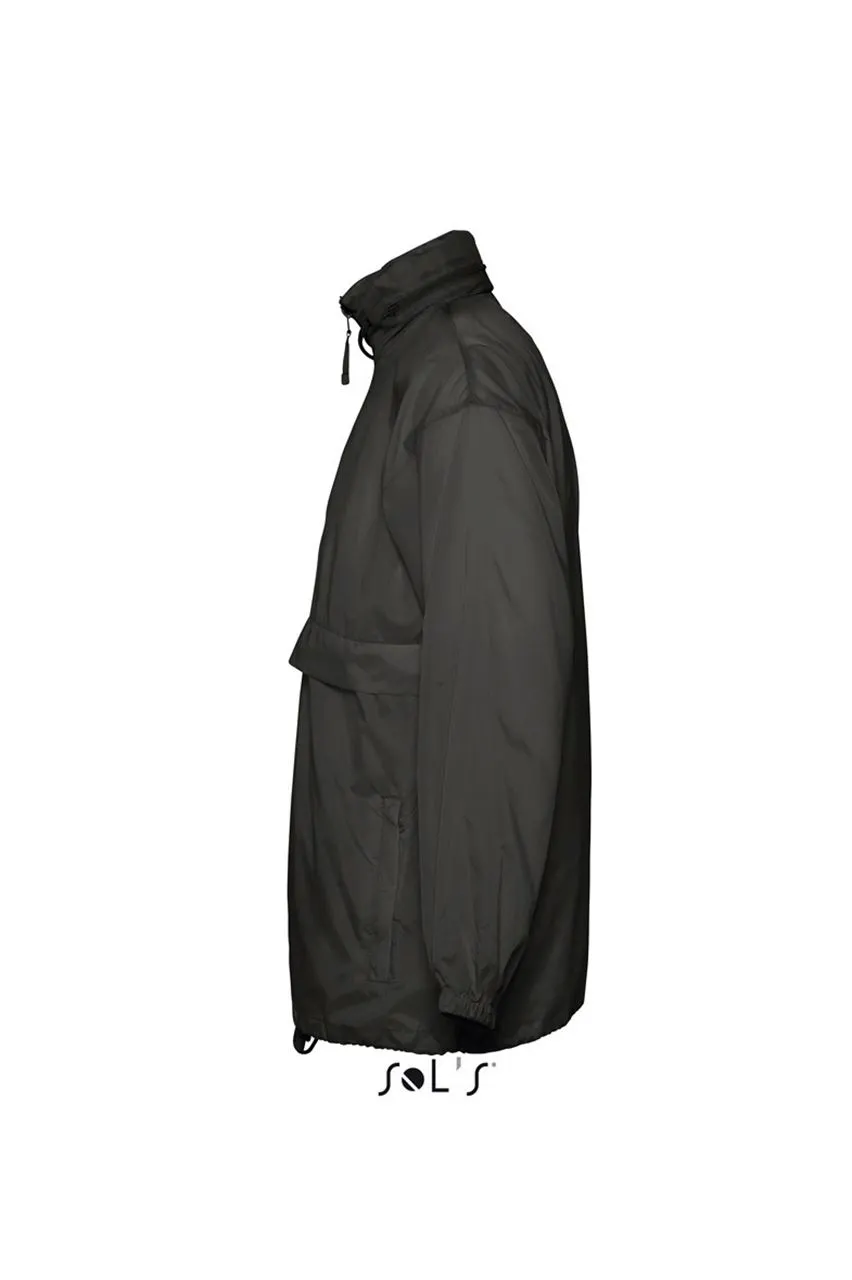 Glugă cu șnur, pliată în guler.