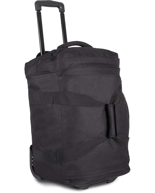 Valiză cu mâner și roți din poliester 600D cu închidere cu clapă cu fermoar, în partea de sus.