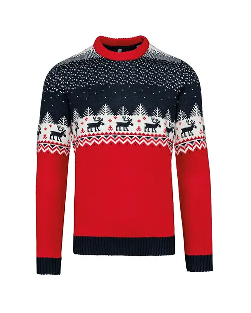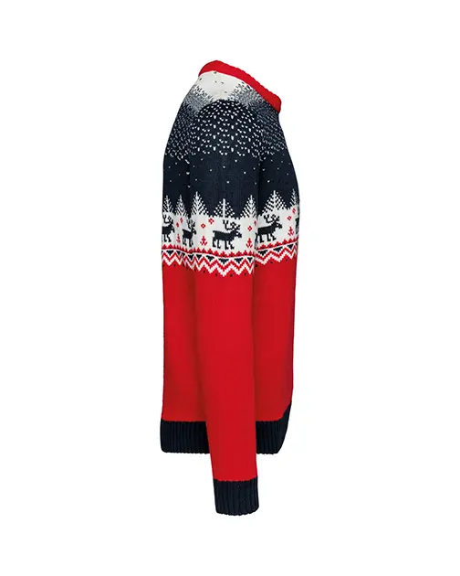Intarsie tricotată cu motive de Crăciun în față, spate și pe mâneci